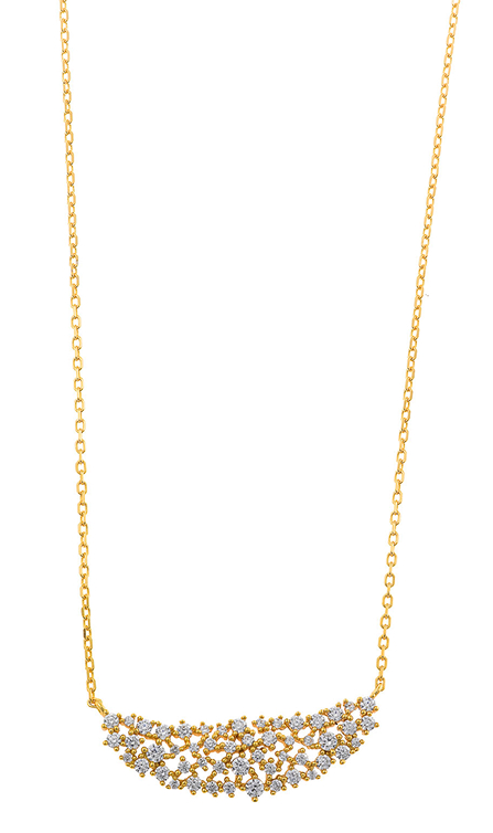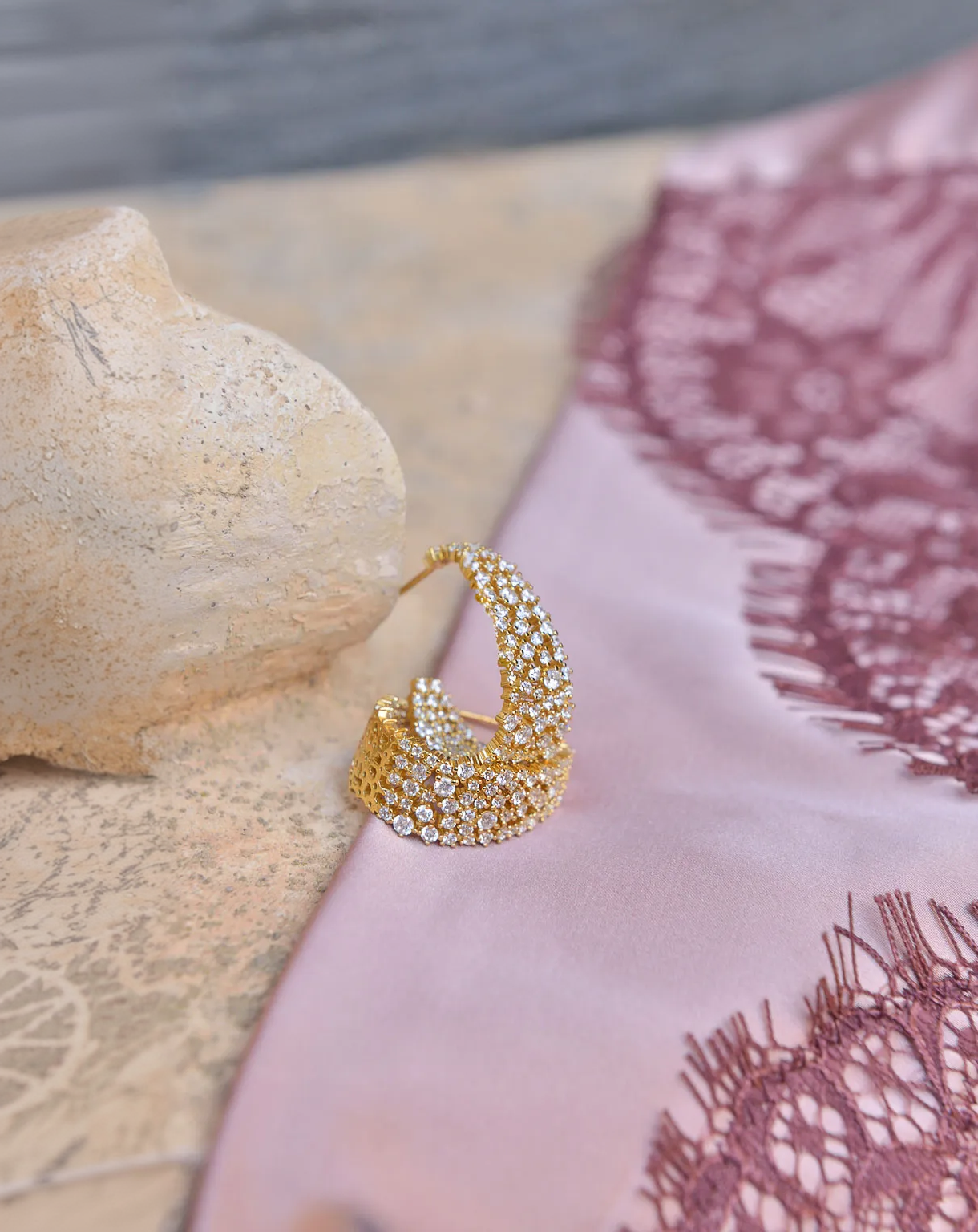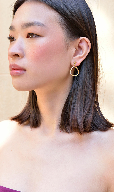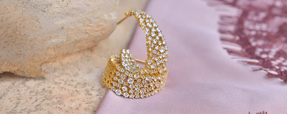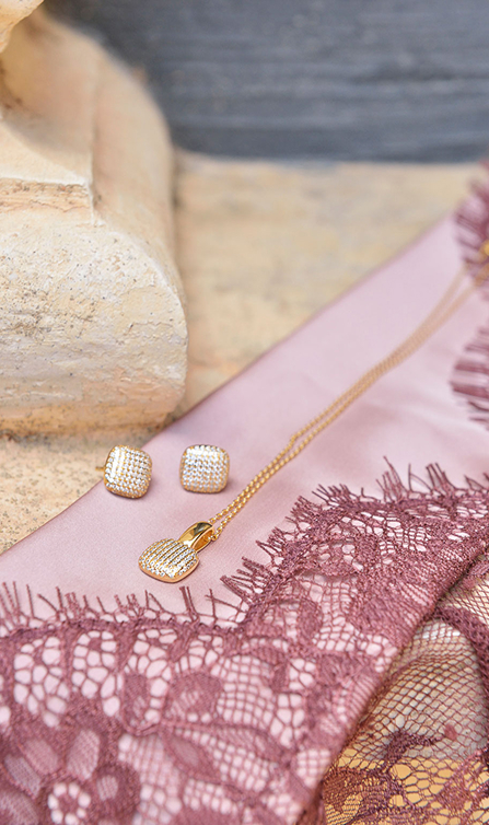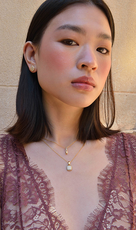 Astral se inspira en los cielos despejados sobre los desiertos que bordeaban las antiguas rutas de comercio, donde las noches estrelladas acompañaban los viajes de caravanas y mercaderes. Presenta un hermoso conjunto de plata bañada en oro con pavé irregular de circonitas blancas, que evocan pequeñas estrellas suspendidas en el horizonte. Los pendientes de aro ovalados, con un delicado collar, pulsera y anillo a juego que capturan la luz de manera orgánica.