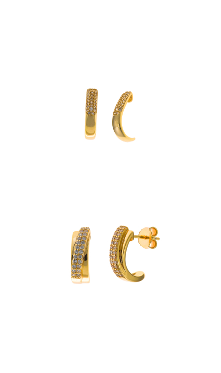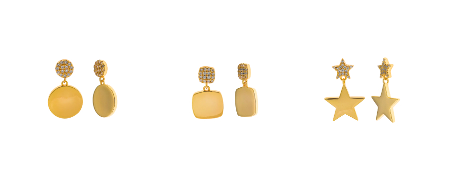 Los diseños clásicos actualizados; pendientes tipo botón, aros, estrellitas, cuadrados y círculos, aportan un toque moderno y versátil para el día a día.