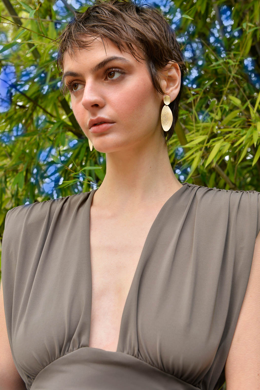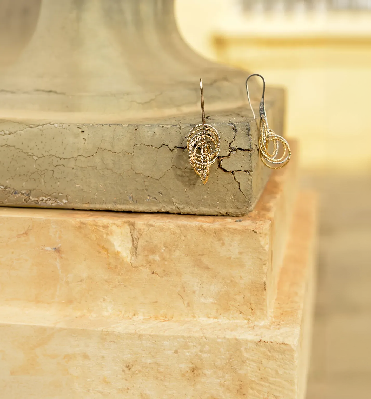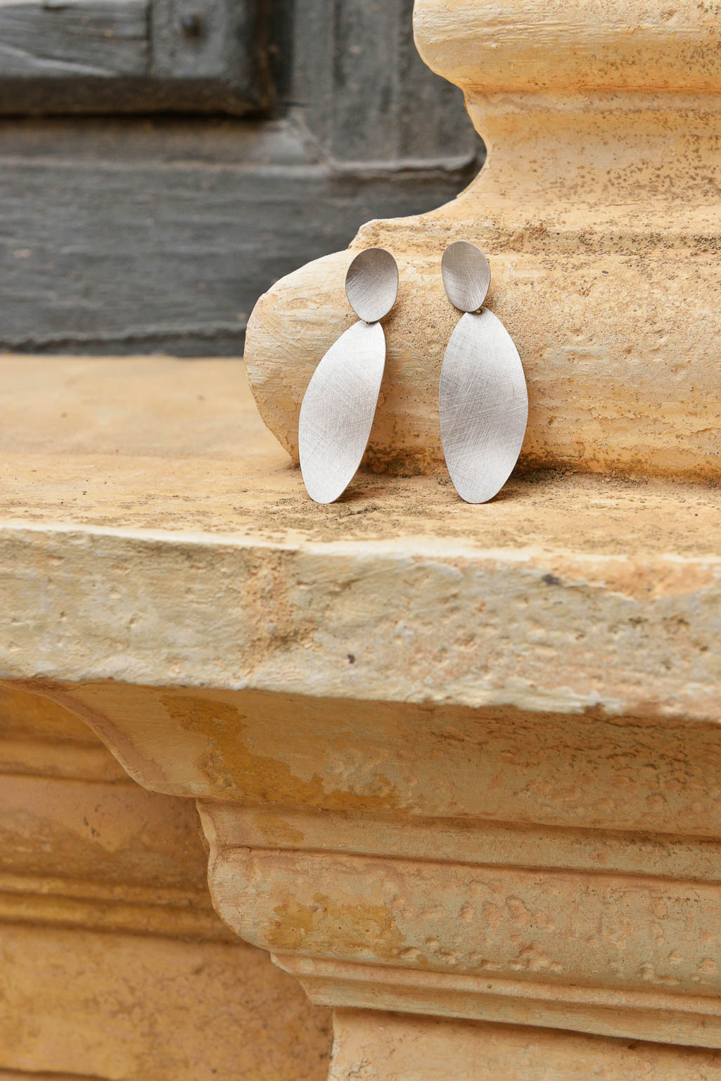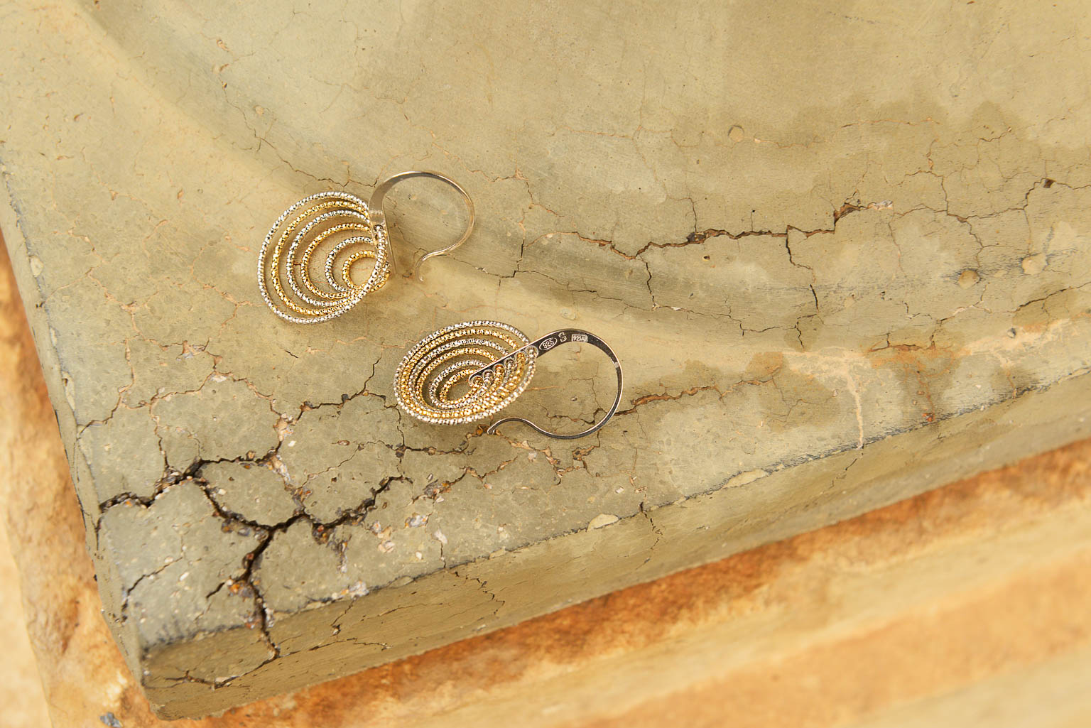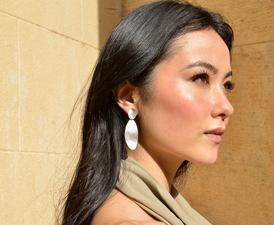 La segunda línea combina finas láminas de plata bañada en oro con acabado cepillado en pendientes geométricos y collares largos con formas muy orgánicas, con detalles en rodio con un diamantado muy especial.