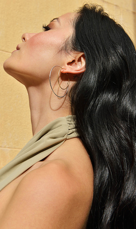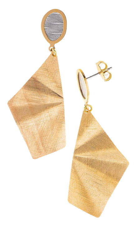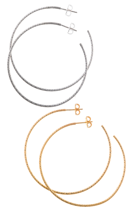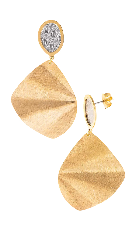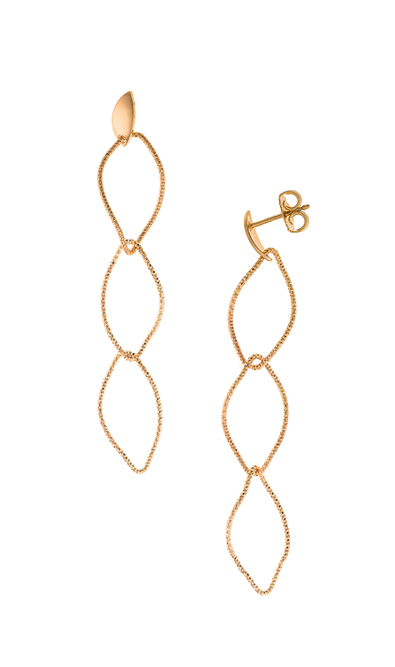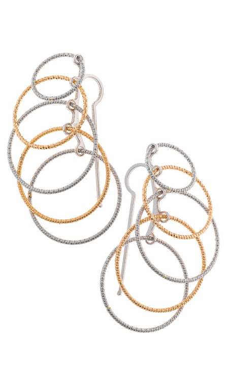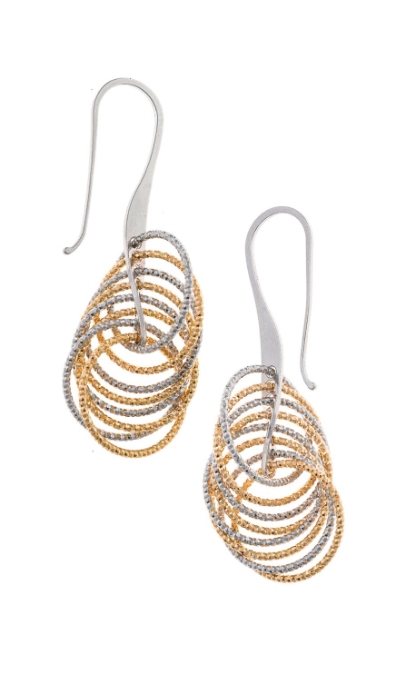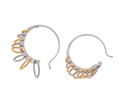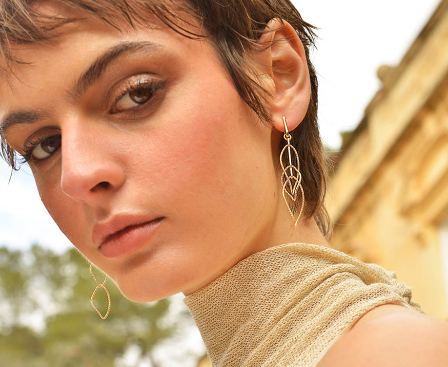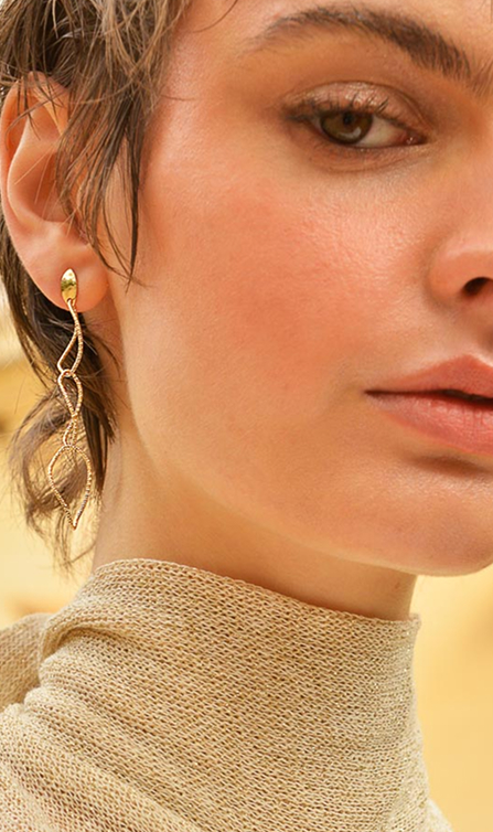 Los top ventas incluyen pendientes de aritos diamantados con baño combinado de oro y rodio, y los largos de finos rombos entrelazados en baño de oro, ligeros, modernos y versátiles.