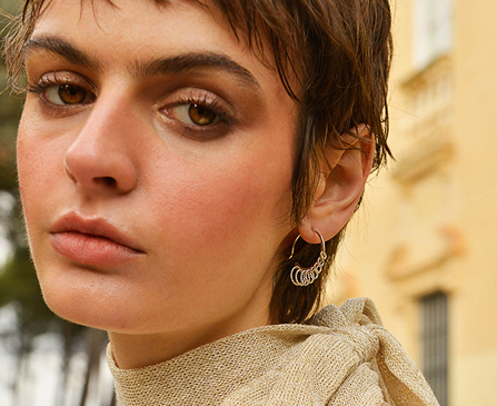 La colección incluye también versiones más pequeñas, manteniendo la misma delicadeza y fuerza visual, perfectas para combinar y superponer en un juego de joyas lleno de ritmo y color.